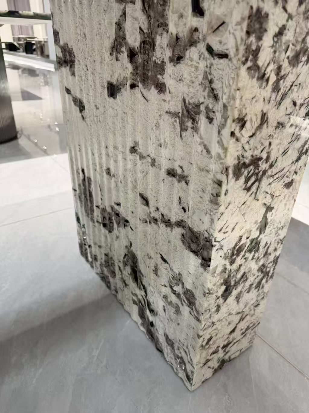 It’s paired with integrated table legs of the same texture, boasting a sleek and sophisticated overall style.