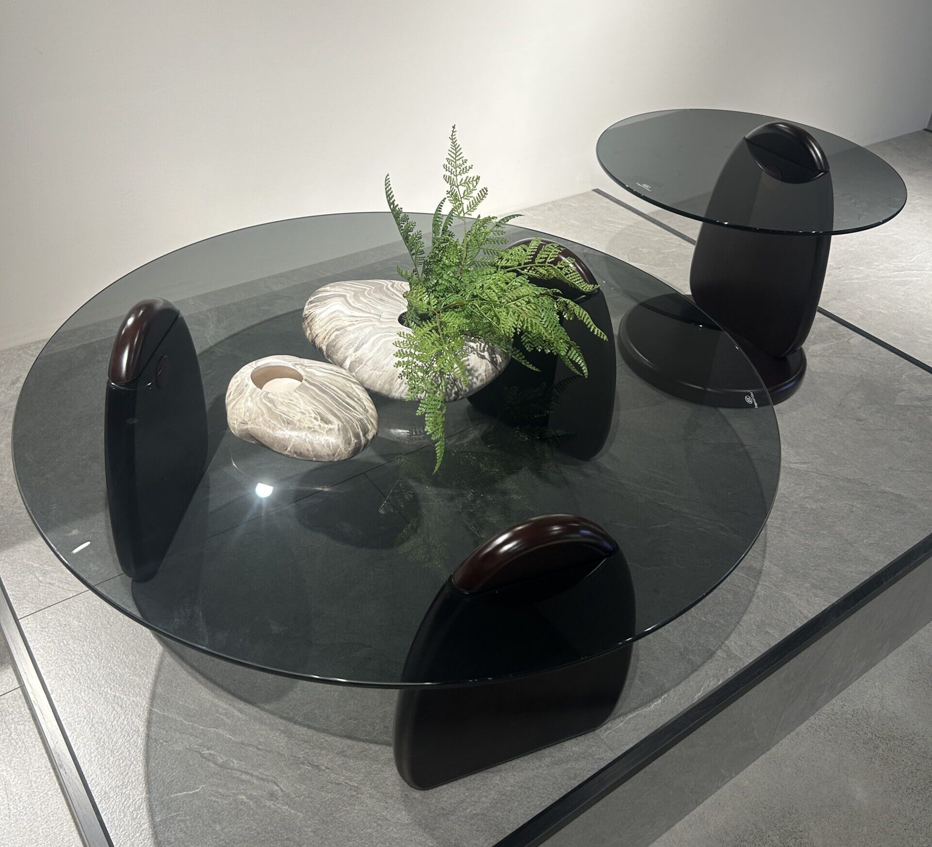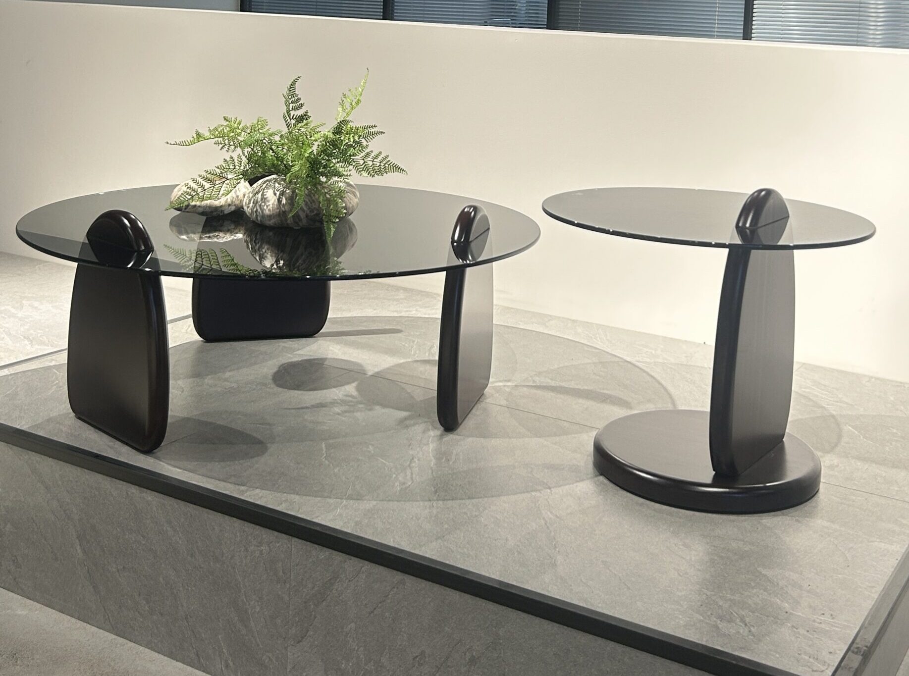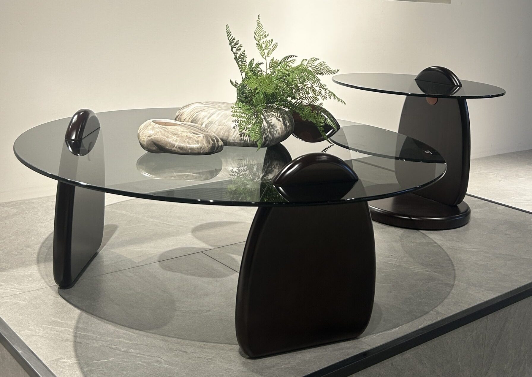 The “Minimalist Fluid” Black Glass Art Side Table Set takes “flowing lines” as its design soul—the tabletop is made of high-transparent black glass, with a cool and high-end texture; the base features a sculptural fluid shape, where matte black texture and curved outlines collide to create a minimalist artistic atmosphere. The large and small double sizes fit multiple scenarios such as living rooms and bedrooms. It is not only a storage side table, but also an art installation in the space, infusing relaxed design sense into modern homes.